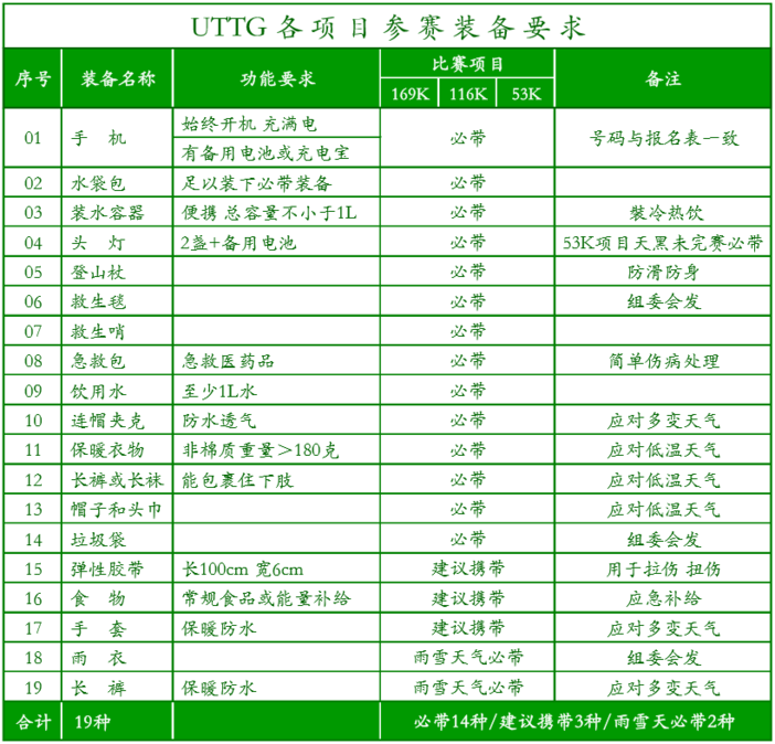 - 参加UTTG全程169公里项目:年龄在20岁以上60岁以下